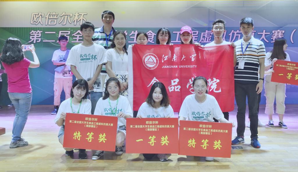 2019年6月28–6月29日,第二届全国大学生食品工程虚拟仿真大赛(南部赛区)在华南理工大学举行。江南大学食品学院3支参赛队伍在南部赛区89支队伍中脱颖而出,取得了优异成绩,其中陈广雪、徐志兵、陈旭小组和孙彦文、邹莹莹、陈雪小组获得特等奖;陈晨、冯若男、李姝琦小组获得一等奖。陈广雪小组将代表江南大学晋级全国总决赛。院教学中心李晓瑄老师、常明老师、辅导员刘鑫带队参加了本次比赛。