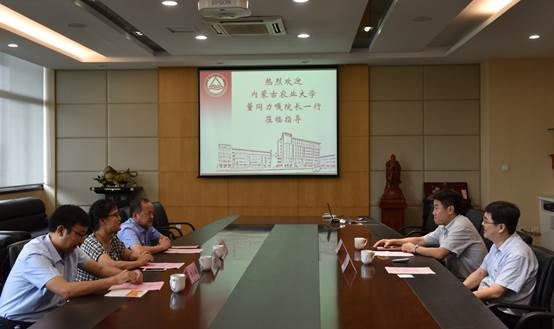 刘元法院长首先代表食品学院对董同力嘎院长一行的到来表示热烈欢迎,内蒙古农业大学食品科学与工程学院是国内食品学科众多高校学院中一支有特色、有实力、有情怀的重要力量,本次到访是增强相互联系、加深彼此了解的重要活动。随后,王周平副院长详细介绍了学院本科教学的各方面建设情况,重点介绍了本科学生工程化培养的举措和经验。通过本次座谈交流,两院愿意共同在学生培养、师资队伍建设以及学科建设等重点环节建立长期合作联系,共同为做好食品学科发展贡献力量。