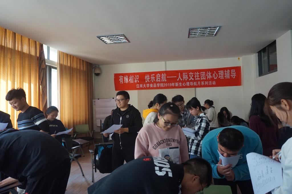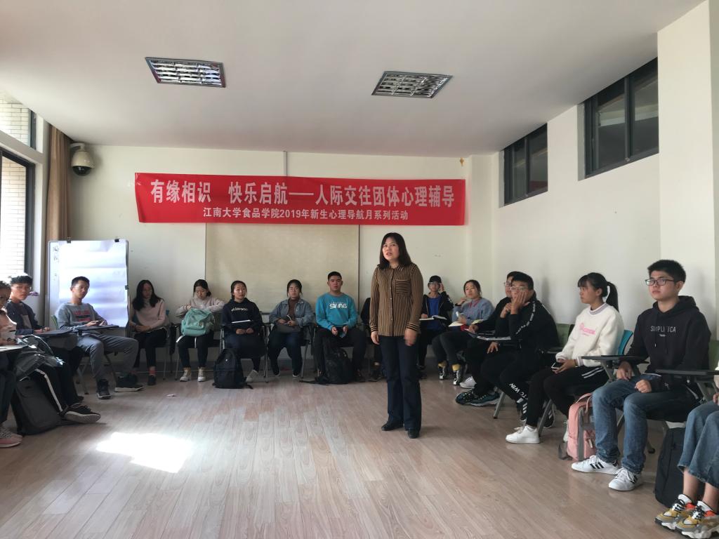 10月30日下午,食品学院“有缘相识,快乐启航——人际交往团体心理辅导”主题活动在北区大学生活动中心321活动室顺利开展。本次团辅活动邀请了校心理健康教育中心陈华平老师,食品学院辅导员李琳、胡晓丹、杨光宝以及自主报名的28名研本新生参加了此次活动。