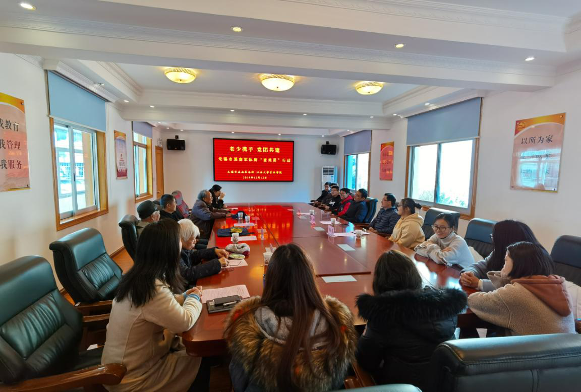 12月12日下午,在学院党委副书记张文、辅导员杨光宝带领下,食科1709团支部代表前往无锡市溪南军休所,双方开展“老少携手 党团共建”活动。