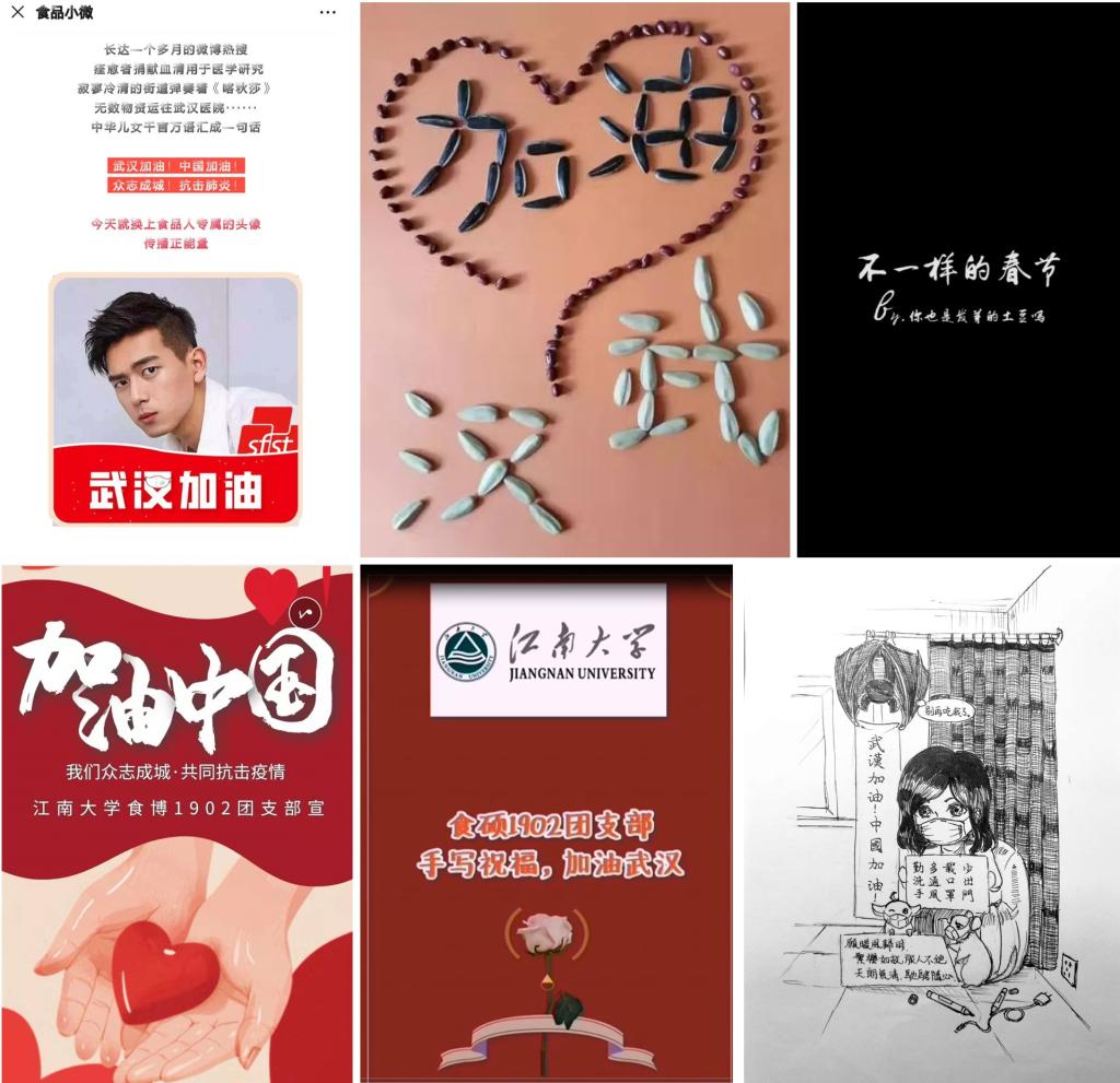 疫情防控阻击关键期,全国人民万众一心、同舟共济,这无疑是一堂鲜活生动的爱国主义教育思政课。学院的食品小微、食品研究生会、食品青年团微信公众号及时快捷地向全院师生公布疫情信息、宣传科学防治,引导师生坚定信心、积极配合、科学参与疫情防控,消除恐慌心理。还发起“武汉加油”的食品专属头像接力,短短4小时,参与人数超过5000人次。