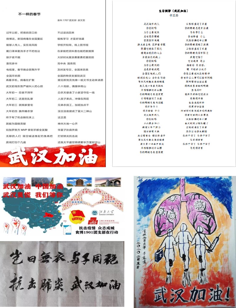 食科1906、食科1704等团支部,通过手写祝福这种方式,表达对疫情的关注,对同胞的关心,为武汉加油,为中国加油!
