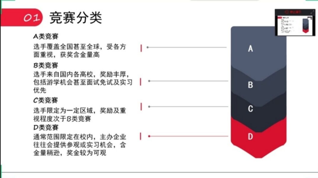 最后,荣膺第四届全国大学生生命科学创新创业大赛一等奖的刘思宇对全国大学生创业计划竞赛和全国大学生课外学术科技作品竞赛做出了具体阐述,包括两者的侧重点、赛组、赛制等,并就备赛方面给出了一些建议。她强调,指导老师的作用以及对参赛成果的展示十分重要。在分享的最后,她以自己“奔走在自己的热爱里,保持炙热坚持下去,于热爱中遇见更好的自己”的科创理念,与同学们互勉。