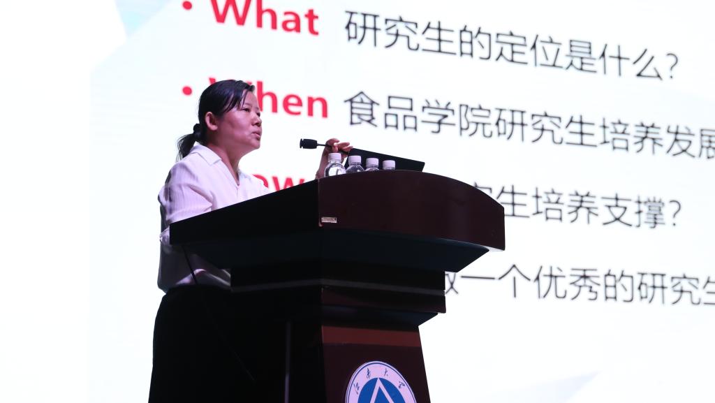 孙秀兰以“食代江南,止于至善”为主题进行科学道德教育。她重点介绍了学院的研究生培养,希望大家提高专业素养,努力成为能适应新时代,有优秀人格的创新性人才。
