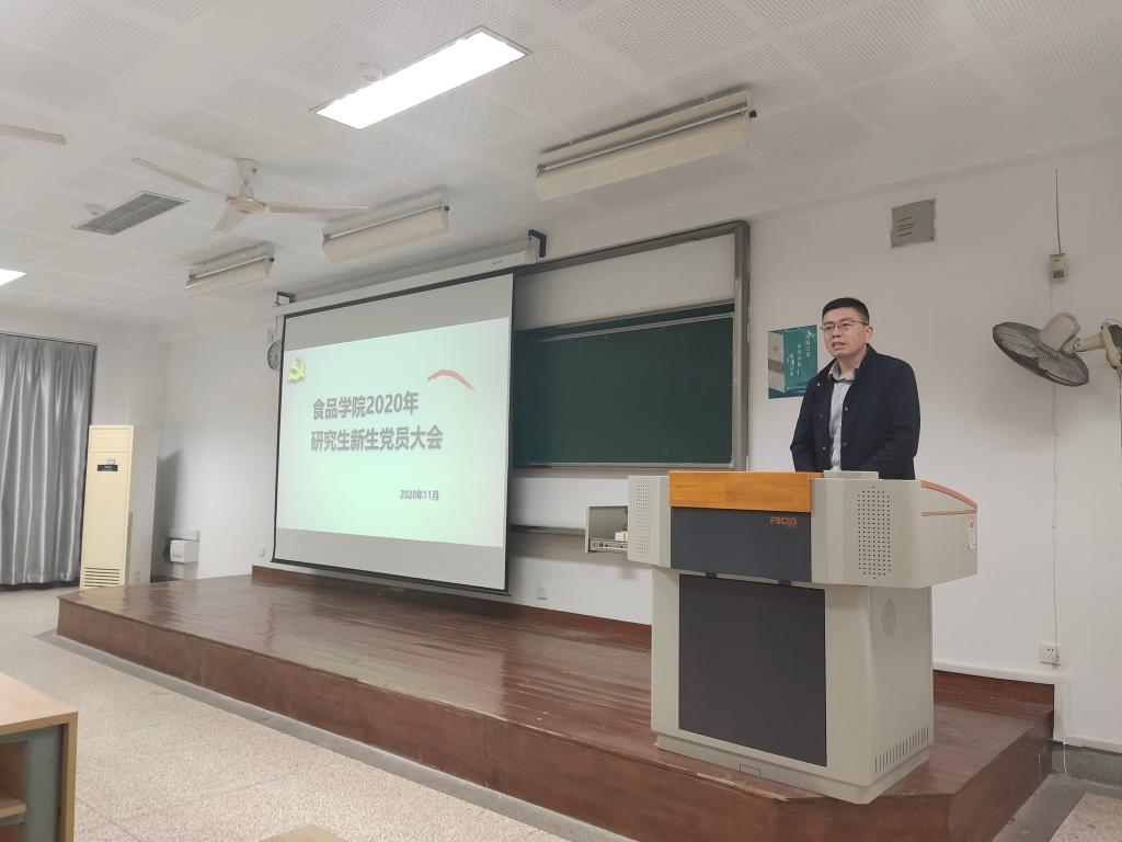 近日,食品学院2020级研究生新生党员大会在第二教学楼2A127举行。食品学院党委副书记魏珍吉、辅导员张瑶瑶、杨光宝及全体研究生新生党员参加了会议。