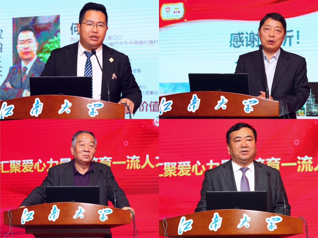 随后,“汇聚爱心力量,培育一流人才”研讨会正式进行。内蒙古燕谷坊生态农业发展(集团)有限公司董事长何均国、益海嘉里全球研发中心总监徐学兵、内蒙古恒丰食品工业(集团)股份有限公司董事长魏建功、上海海融食品科技有限公司总经理黄海瑚、宁夏塞外香食品有限公司董事长胡学文、温州龙强乳品机械厂总经理项炳华等五位理事分别作主题研讨,他们结合自身成长、求学经历,围绕企业发展情况,深入、全面地分析了食品学科与行业的发展前景,他们劝诫同学们要努力学习、不断创新,坚守食品行业,为实现食品强国梦积极贡献。