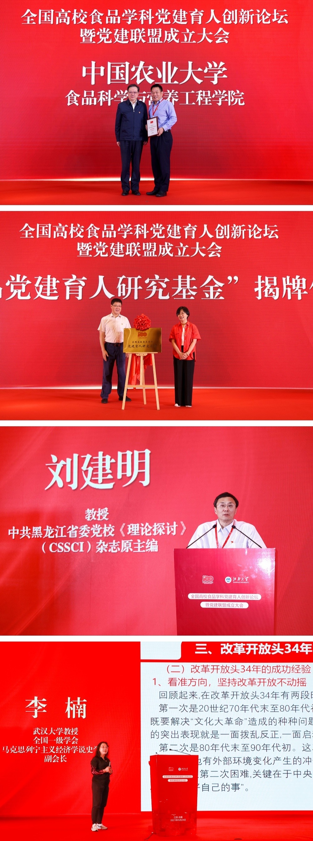 大会现场,食品学科党建联盟发布了2021年食品学科“课程思政”典型教学案例征集活动和健康乡村食品科技全国行系列活动,以实际行动献礼建党100周年。随后,江南大学马克思主义学院唐忠宝教授从思政视角对食品学科党建联盟活动进行了深度推介。