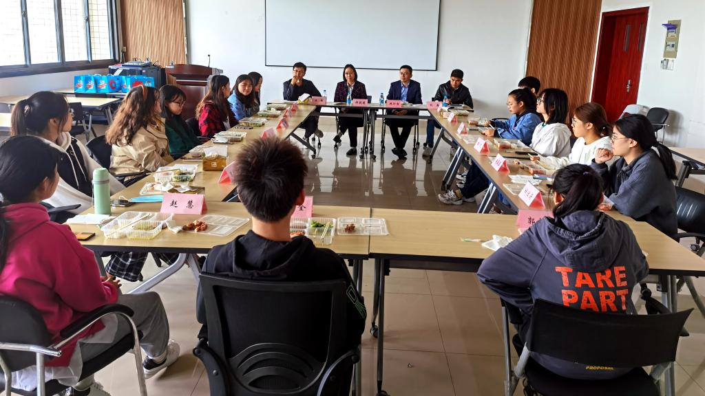 10月21日中午,食品学院在食品楼D916会议室召开2021年国内交换生迎新午餐会。学院党委书记傅莉莉,党委副书记、副院长魏珍吉,分团委书记朱伟以及来自新疆石河子大学、山西师范大学的15名交换生参加了座谈,座谈会由辅导员刘鑫主持。