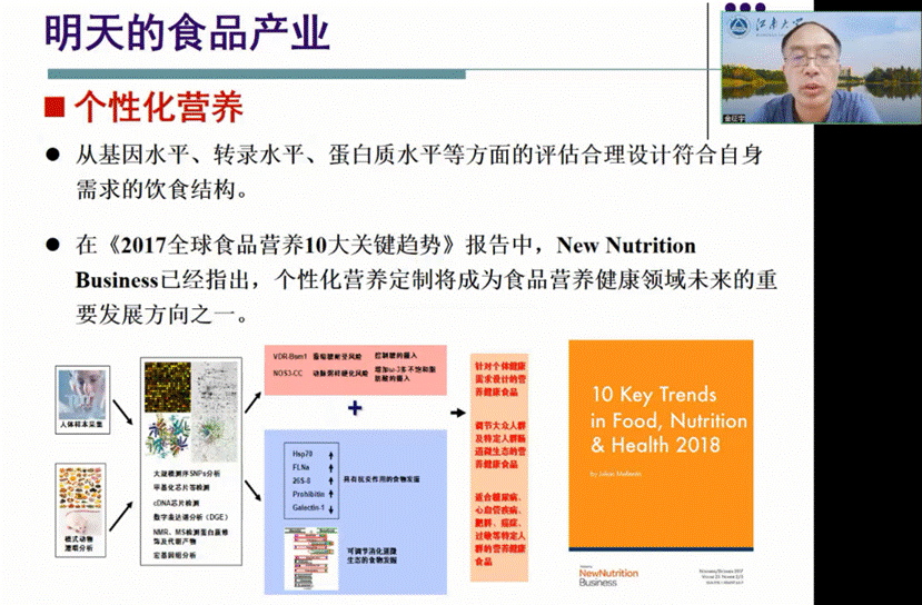 金征宇做“我国的食品工业与未来食品”主题讲座,向同学们介绍了食品工业发展状况和趋势、机遇和挑战,食品产业发展中的科技对策以及“个性化”营养、3D打印等未来食品的发展前景,让同学们对食品行业发展和动态有了一定认知和了解。最后,金征宇建议研究生同学们在科研选题工作中,能够将个人兴趣方向与服务国家战略需求,解决行业实际问题有机结合和统一,从而使研究更有意义更有价值!