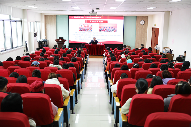 朱庆葆指出,党的二十大是在全党全国各族人民迈上全面建设社会主义现代化国家新征程、向第二个百年奋斗目标进军的关键时刻召开的一次十分重要的大会,是一次高举旗帜、凝聚力量、团结奋进的大会。报告围绕党的二十大报告确定的重要思想、重要观点、重大战略、重大举措,从深刻把握党的二十大的主题和主要成果、深刻把握新时代十年的伟大变革、深刻把握新时代新征程面临的机遇和挑战、深刻把握开辟马克思主义中国化时代化新境界的历史责任、深刻把握以中国式现代化全面推进中华民族伟大复兴的使命任务、深刻把握全面从严治党的重大要求、深刻把握青年师生的责任使命等七个方面对党的二十大精神作了准确阐释和深入解读。