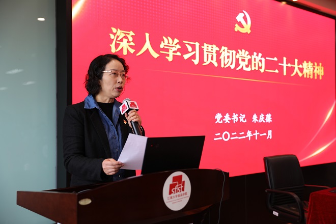 11月30日,校党委书记朱庆葆教授在食品学院D912会议室为食品学院师生代表作了学习贯彻党的二十大精神辅导报告。食品学院党委中心组成员、行政党支部、本科生第一党支部、食科1904团支部等150余名师生参会。学院党委书记傅莉莉主持会议。