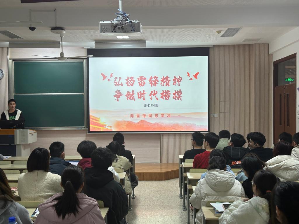 3月4日,食品学院开展“雷锋精神”主题学习活动,学生团支部组织团员青年集体观看雷锋专题纪录片,深入了解雷锋同志的事迹故事,感受雷锋同志坚定的共产主义理想信念,并进行深入研讨交流,将雷锋精神融入青年学习、实践和成长中。