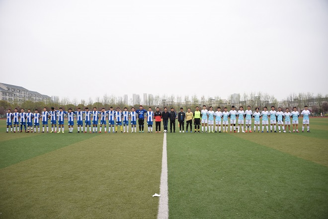 校党委副书记戴月波与当日比赛双方球员及裁判员合影