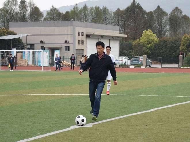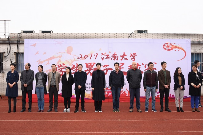 3月29日下午,2019年江南大学学生男子足球赛开幕式在学校西北操场成功举办。本届足球赛由江南大学体育运动委员会主办,商学院承办。校党委副书记戴月波、体育部党总支书记戴建明、商学院党委书记李佳敏、体育部副主任戴平以及部分参赛学院党委副书记出席开幕式。商学院啦啦操队带来了精彩的暖场表演,伴随着庄严的国歌,开幕式正式拉开帷幕。