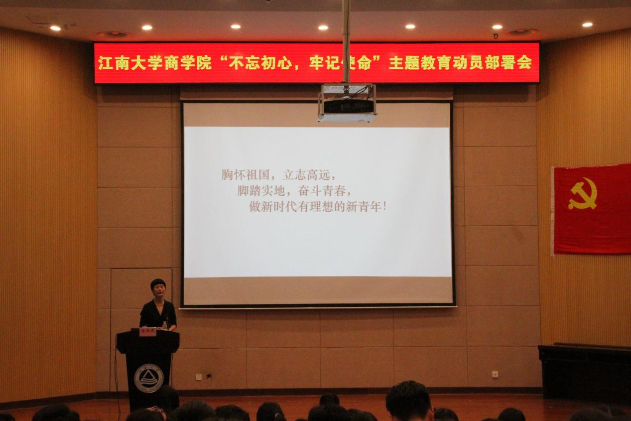 9月27日下午3点,江南大学商学院“不忘初心、牢记使命”主题教育动员部署会暨专题讲座在103远东报告厅召开。江南大学商学院党委副书记、副院长李荣华出席活动并作动员讲话,北京大学马克思主义学院博士、中国社会科学院国家文化安全与意识形态中心特约研究员吕其庆教授受邀出席并作“不忘初心、牢记使命”专题讲座。商学院各学生党支部书记、学生党员、学生代表师生200余人参加活动。