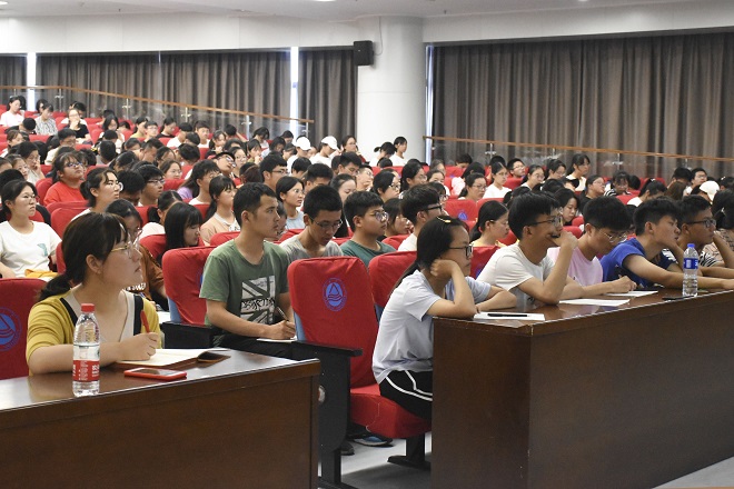 2019年9月29日下午,江南大学商学院 “不忘初心、牢记使命”主题教育第19期业余党校培训班在公益图书馆305报告厅开讲。院党委书记李佳敏,党委秘书、院长助理强心宇以及分团委书记林增出席活动,商学院2019级入党积极分子参加活动。