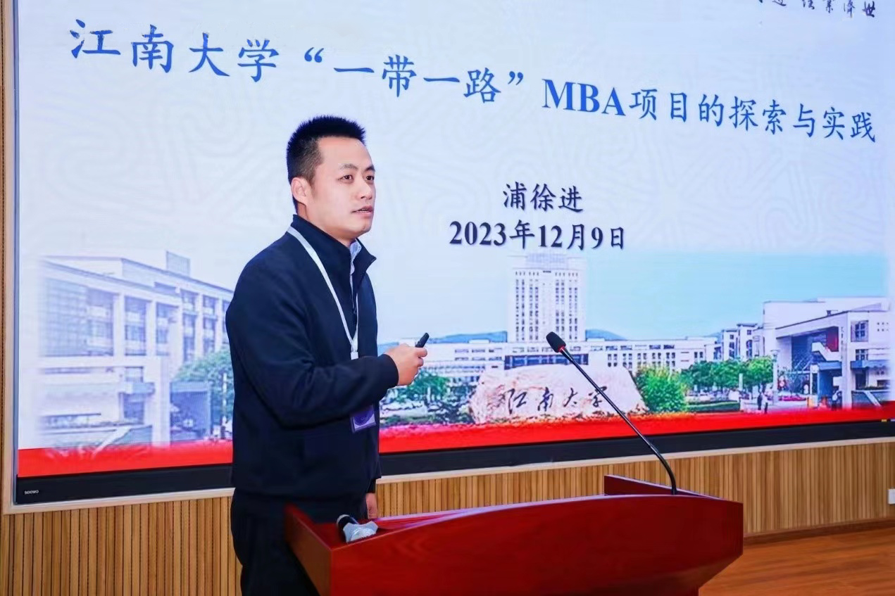 浦徐进向大会分享了“一带一路”倡议十周年与高等教育的成果,详细阐述了江南大学“丝绸之路”工商管理(MBA)校企联合高层次人才培训项目2020年获批中国政府奖学金项目以来的发展动态、创新培养模式以及面临的挑战,从如何发挥MBA项目产教融合优势、如何发挥“一带一路”MBA项目“文化使者”影响力等方面提出了项目未来发展的构想。