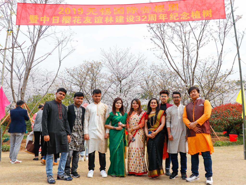3月27日,2019无锡国际赏樱周暨中日樱花友谊林建设32周年纪念活动在鼋头渚公园拉开帷幕。当天,鼋头渚3万余株樱花浪漫绽放,吸引了来自爱尔兰、比利时、丹麦、美国、日本等29个国家的700余名嘉宾共赴现场。陆力瓦、索玛等来自尼泊尔、孟加拉国的我校9名留学生代表受邀参加赏樱周文艺演出。