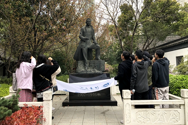 走进故居大门,映入眼帘的是周恩来同志的题词:“博古!你是为修改宪草而粉身碎骨的。我记住,我永远记住。我敢向你保证:我们要为完成一部民主宪法,建立民主中国而奋斗到底!”博古为人民而死,死得其所。在展厅中,大家看到了很多博古先生使用过的物品,大家仔细阅读每一段文字,观看每一幅图片,缅怀他的革命业绩、高贵品质和献身精神。最后大家在博古先生雕像下合影留念,并重温了入团誓词。