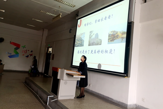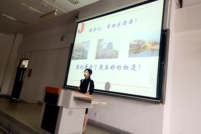 2019年5月16日上午,江南大学北美学院2015级毕业生年级大会在2A127教室顺利召开。学院党委副书记副院长荆燕、学工部主任张慧受邀参加大会。会议由年级组长黄肖老师主持。