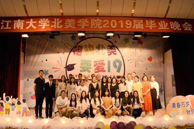 江南大学北美学院2019届“相约北美,要爱19”毕业晚会于5月23日晚在南区大学生活动中心报告厅举行。国际教育与北美学院党委书记高雪梅,院党委副书记、副院长荆燕,美国诺斯伍德大学副校长助理Mamiko Reeves,部分中外方教师代表,2019届全体毕业生以及部分毕业生家长共同观看了本次晚会。