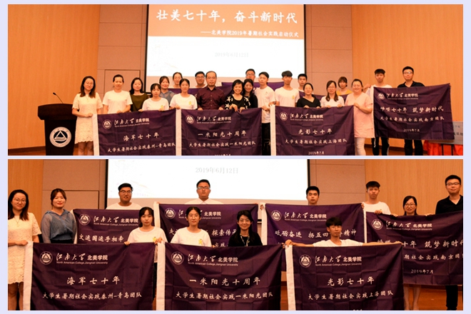 正值中华人民共和国成立70周年之际,为调动全院学生参与暑期社会实践的积极性,勉励大家将理论与实践紧密结合,锻造团队合作意识,明确自身发展目标,培养爱国主义情怀,2019年6月12日下午,江南大学北美学院于远东报告厅开展了2019年暑期社会实践活动启动仪式暨社会实践基地揭牌仪式。国际教育学院与北美学院党委副书记、副院长荆燕等出席,2018级全体学生参加了此次活动。