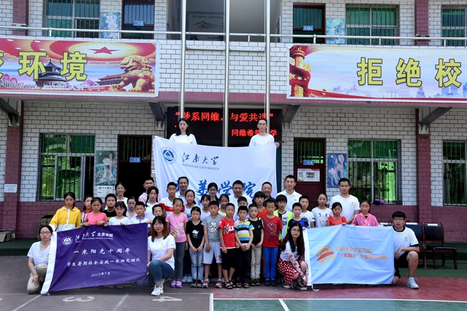 江南大学北美学校“一米阳光”支教服务团队成立于2010年,致力于弘扬“奉献、友爱、互助、进步”的志愿服务精神、践行社会主义核心价值观,通过支教服务为主线的主题活动引导青年学生树立远大理想、热爱伟大祖国、担当时代责任、勇于砥砺奋斗、练就过硬本领、淬炼品德修为。