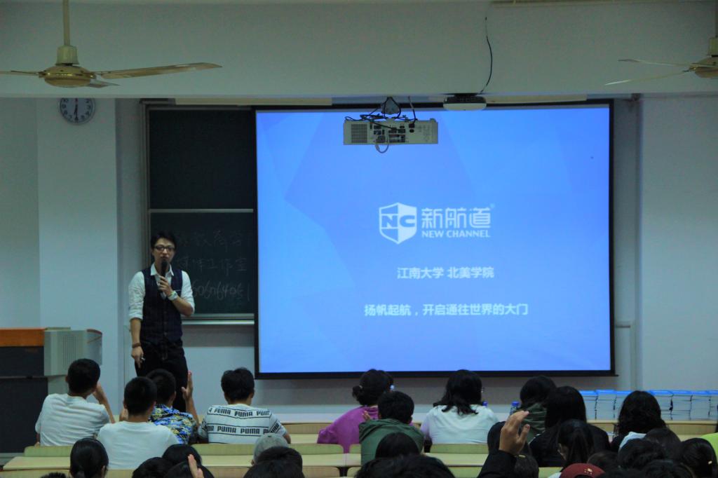 为帮助新生确立大学目标,明确学习方向,完善个人规划,进一步提高个人素养,尽快完成身份转型,北美学院2019年9月23日在二教2D206举行了以“扬帆起航,打开通往世界的大门”为主题的新生转型教育主题讲座。本次讲座主讲嘉宾为无锡新航道教学总监傅泽钇老师,2019级全体新生参加了讲座。