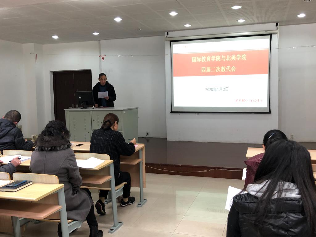 2020年1月3日下午,国际教育学院与北美学院第四届二次教职工代表大会在学院206会议室举行。本次会议旨在进一步贯彻十九届四中全会精神,落实《江南大学二级教职工代表大会实施办法》,加强学院制度化建设。会议大表32人,实际到会31人,会议由院工会主席朱琳主持。