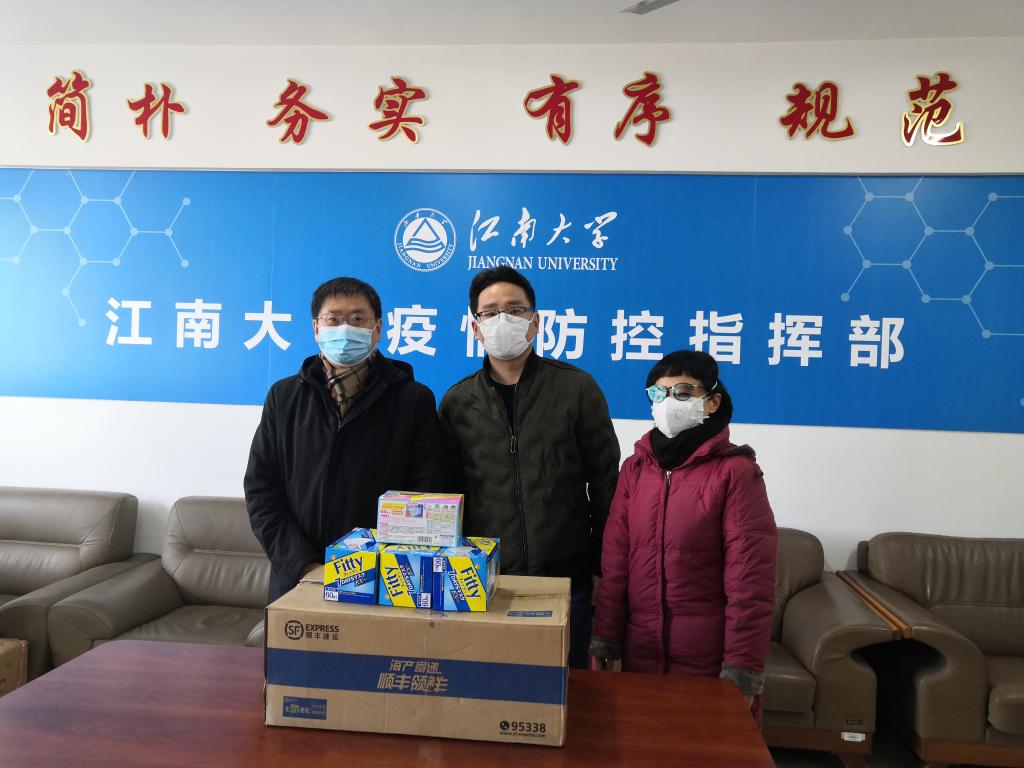 2月19日,在新型冠状病毒肺炎疫情防控的决胜关键期,北美学院2008级校友许思思、宋彬夫妇委托学院向母校捐赠一次性医用口罩840只,支援母校的疫情防控工作。江南大学副校长田备代表学校接受捐赠,并转达了学校的诚挚感谢。