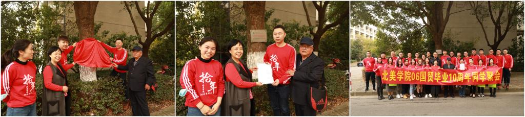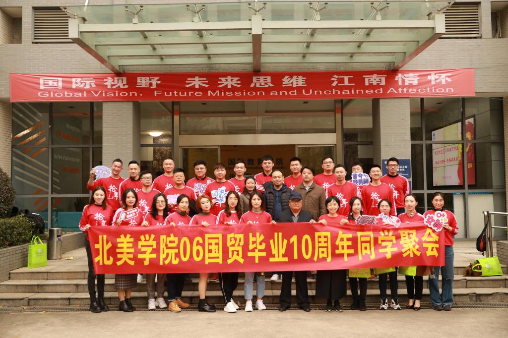 毕业十周年,青春再聚首。11月21日,2006级国际贸易专业的31名校友相约在学院,举行毕业十周年聚会活动。院党委书记陈琳、院党委副书记副院长荆燕、原莱姆顿学院党委书记袁伯兴、院长助理童文俊等领导和老师参加交流会和树木认捐仪式。