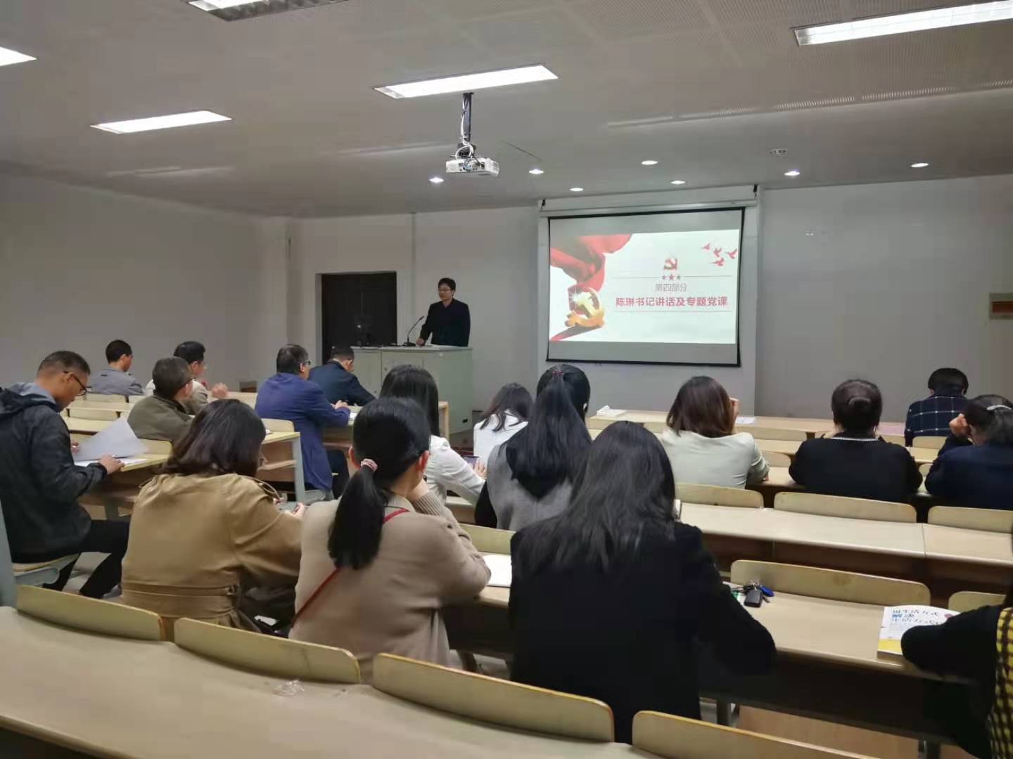 最后,陈琳书记总结讲话并开展专题党课。他强调,我们要认真学习院长传达的两个会议精神,坚持以习近平新时代中国特色社会主义思想为指导,坚决把党中央决策部署和上级工作要求落到实处,扛起全面从严治党党委主体责任,充分发挥了全面从严治党引领保障作用,推动全面从严治党向纵深发展;要牢记为党育人、为国育才的光荣使命,坚持把师德师风作为评价教师队伍素质的第一标准,践行高校教师职业行为规范,落实立德树人的根本任务。