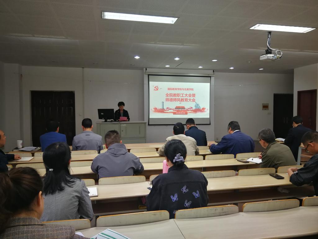 4月22日下午,江南大学国际教育学院与北美学院召开全院教职工大会暨深化全面从严治党、强化师德师风建设工作会议。学院副书记副院长荆燕主持大会。