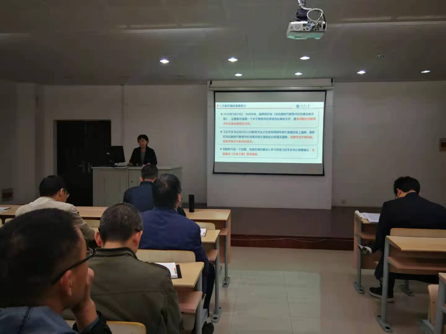 接着,荆燕副书记领学了《深化新时代教育评价改革总体方案》。就《总体方案》的重要意义和主要内容等方面进行了深入阐述,并提出会后以多种形式开展专题学习和研讨,深刻领会《总体方案》重大意义和实质内涵的工作要求。