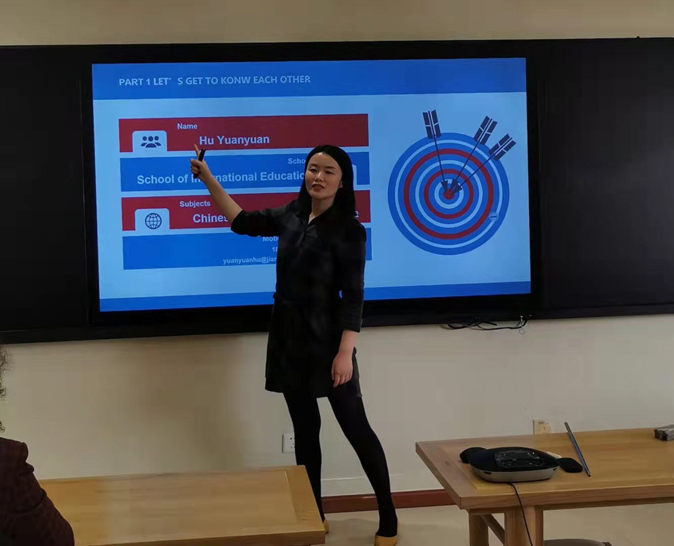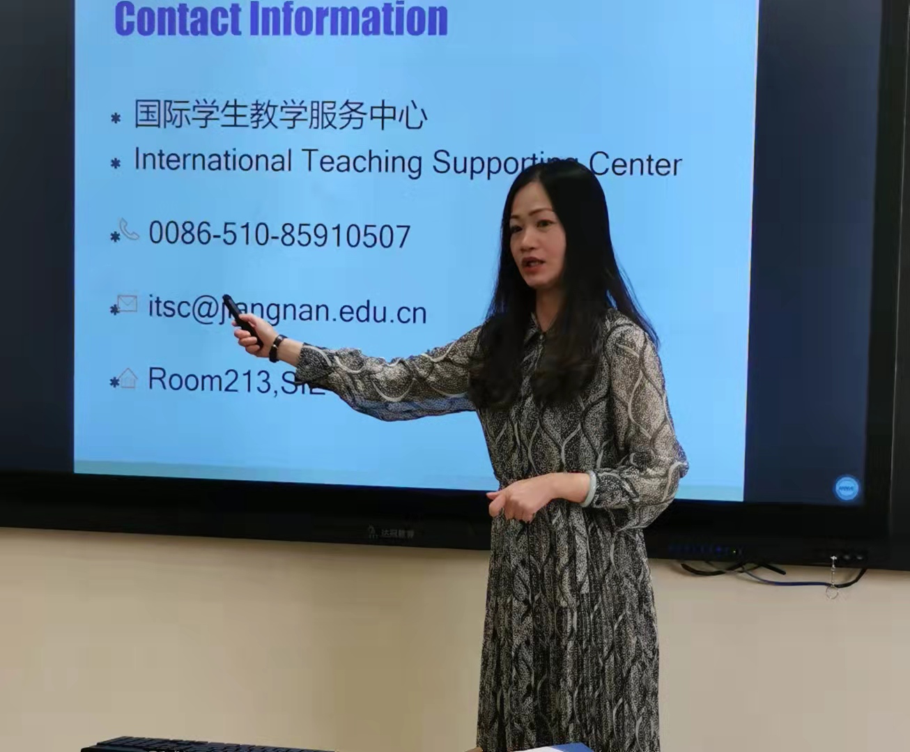 胡袁园为新生进行中国国情教育第一讲。她从国旗、国徽、国歌讲起,详细介绍了中国的基本国情、江南水乡无锡的风土人情以及江南大学的历史沿革,为同学们强化了中国形象的认知感,塑造了良好的江南初印象。