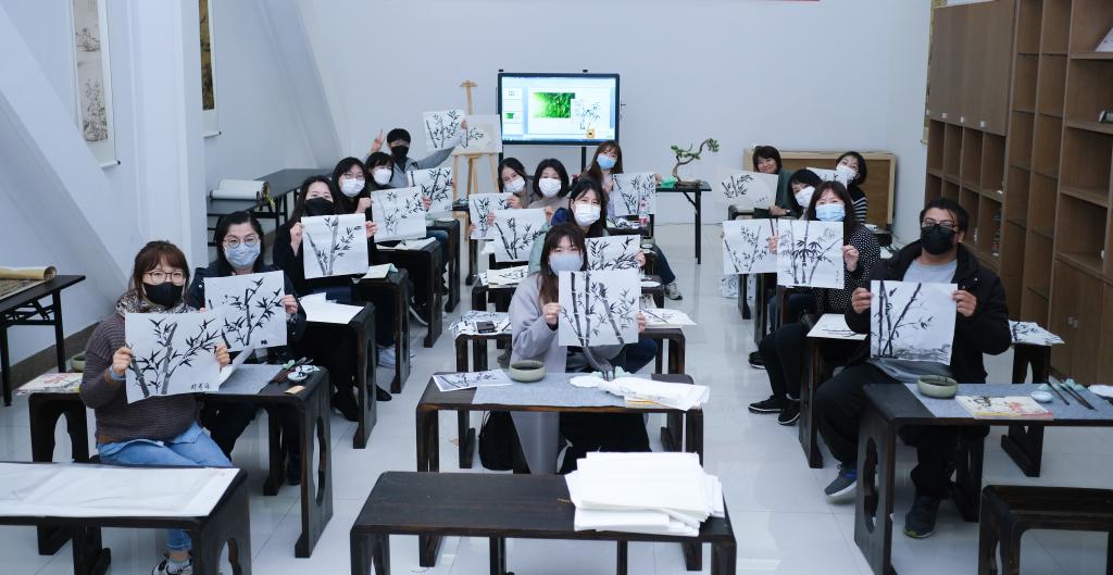 国际学子体验画竹