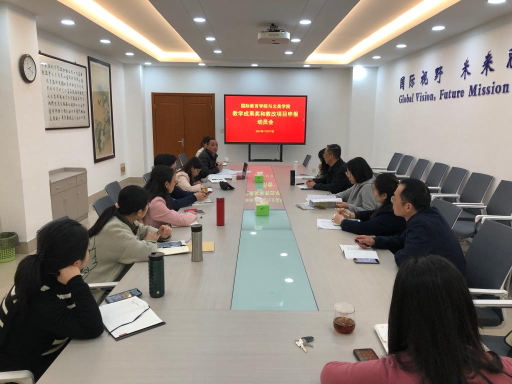 11月17日下午,国际教育学院与北美学院在学院A306召开2021年校级教学成果奖和教改项目申报动员会,全院各部门负责人及相关教师参会。会议由教学副院长周伟主持。院长龚晓斌教授出席并作动员报告。