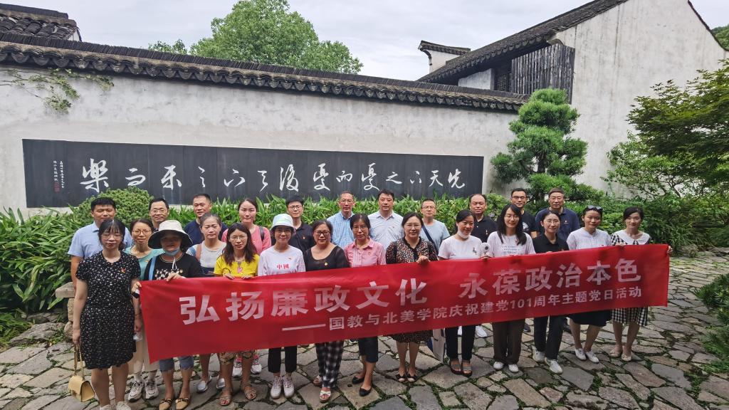 为迎接建党101周年,进一步加强党风廉政建设,引导党员教职工增强廉洁自律意识,筑牢拒腐防变思想防线,6月29日下午,国际教育学院与北美学院党委组织全院党员教职工赴惠山古镇廉政文化教育基地开展“弘扬廉政文化 永葆政治本色”主题党日活动。