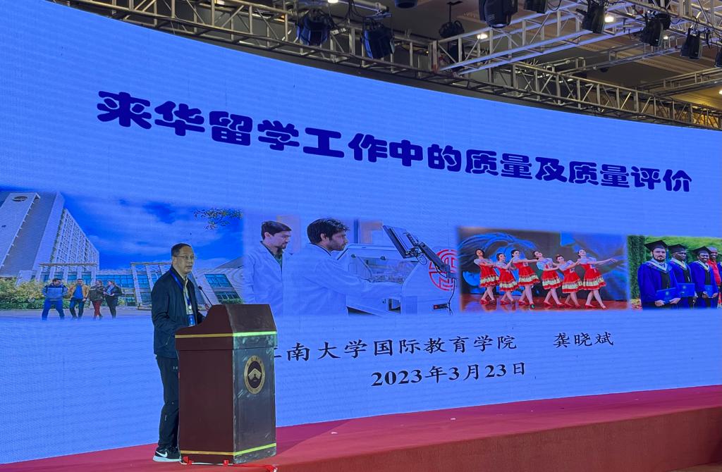 本次年会上,与会人员从留学生国情教育、品牌建设活动、国别研究、培养质量、招生工作等多方面展开了探讨与交流。我校国际教育学院院长龚晓斌作了《来华留学工作中的质量和质量评价》专题汇报,从质量的定义、产品要求、工作质量等角度对来华留学进行深入剖析。