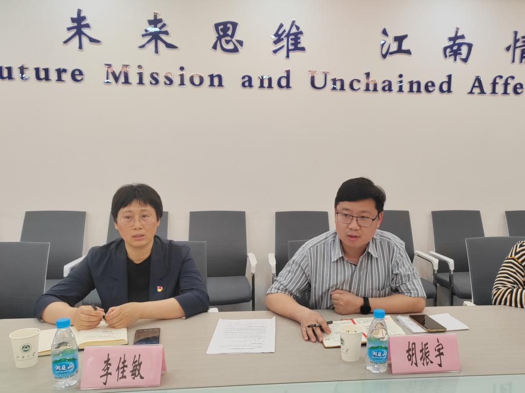 李佳敏对学院宣传思想文化工作的思考与探索给予了充分肯定,指出学院要在现有育人成果基础上加强谋划,更好将国际教育的品牌融入学校宣传思想文化品牌中。她提出,要在“读懂中国”国情教育体系中培育留学生的中国视野,在“感知中国”文化体验中厚植留学生的中国情怀,在“留学江南”的故事讲述中展现管理服务育人的优秀成果,在“国际文化节”的设计中做好结合文章。胡振宇简要介绍了学校融媒体中心基本情况,结合国际教育学院新闻宣传工作实际,他提出要紧跟主旋律、踩好节奏点、奏响最强音,要抢占大报刊、拥抱新媒体、深耕互联网。