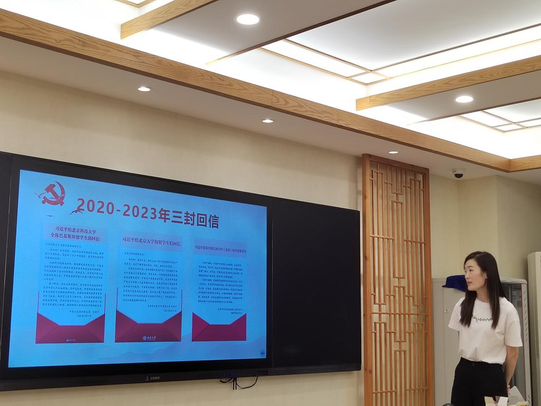 支部宣传委员何倩楠带领大家回顾学习了习近平总书记近年来给留学生群体的三封回信,并分析讲解了其传达的重要意义。三封回信既体现了党中央对来华留学事业的高度重视、对来华留学生的亲切关怀,也传达了对留学生的期待和要求,希望留学生群体能够讲好中国故事、传播中国声音,同中国青年一起为人类命运共同体的构建贡献力量。何倩楠提出了对回信精神的学习“要”在学深悟透,“重”在落地见效,“贵”在全员参与。作为来华留管干部,要不忘初心,努力为国家培养知华、友华、爱华的国际学子,为推动民心相通和人类命运共同体的构建贡献力量。