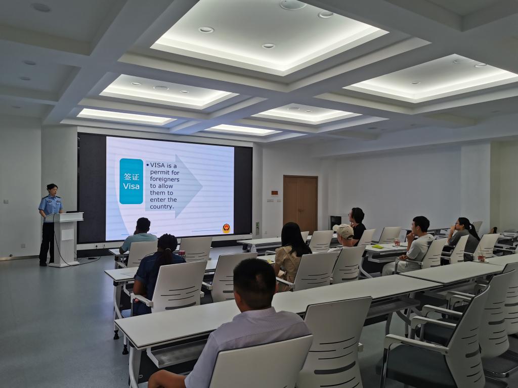 为了帮助秋季入学的汉语生尽快适应跨文化环境,了解中国法律法规和校纪校规,9月19日下午,国际教育学院在文科楼2A206举行了2023年汉语生秋季入学教育。此次活动邀请到了无锡市公安局出入境管理支队警官张莉作为主讲嘉宾。