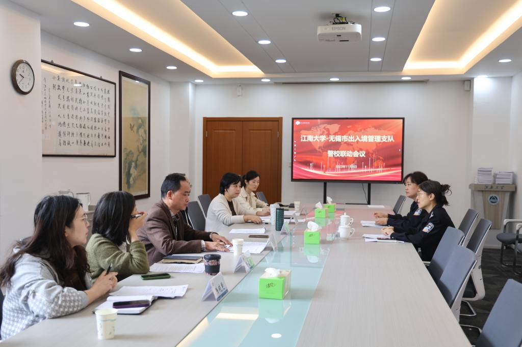 11月8日上午,国际教育学院与无锡市公安局出入境管理支队三大队召开警校联动会议,无锡市公安局出入境管理支队三大队大队长葛晓晖、民警原玉娟,国际教育学院院长龚晓斌、党总支副书记兼副院长王胤、副院长周伟以及相关部门负责人参会。