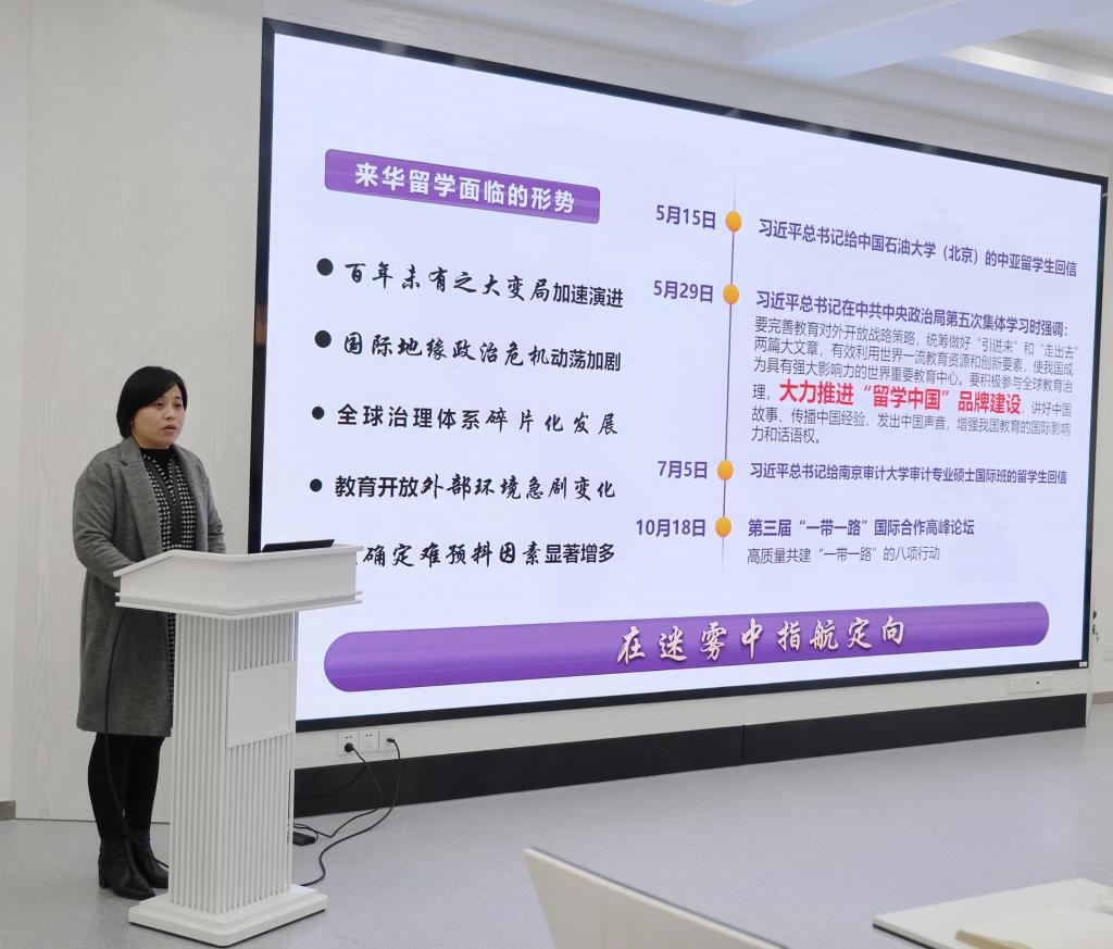 会议首先听取了国际教育学院关于2023年江南大学来华留学工作的汇报,从基本数据、招生工作、日常培养、机制建设、绩效评价、学生活动等方面,对我校全年的来华留学工作进行了较为详细的总结。