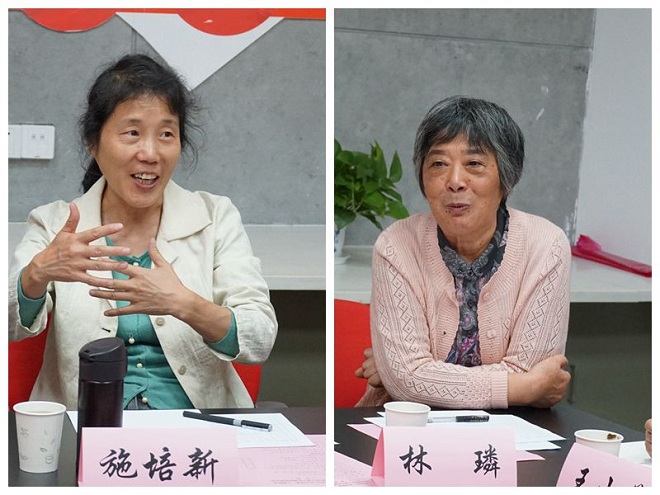设计学院关工委常务副主任施培新、关工委组织员林璘分别发言交流