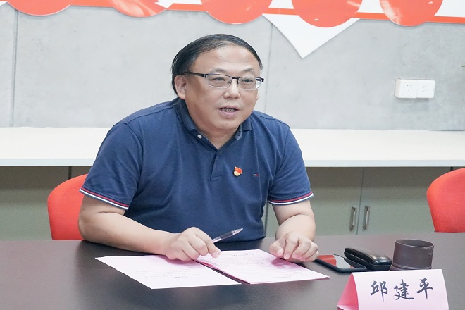 最后,邱建平做总结发言,首先代表学院党委对新党员加入中国共产党表示热烈欢迎和衷心祝贺。他表示新冠疫情发生以来,中国共产党以民为本、生命至上,带领全国人民同舟共济,共克时艰。党员同志们冲在一线、无私无畏,让爱温暖人间。加入这个光荣的组织,是荣誉,也是责任!之后,结合工作经历和学院培养目标,用七个关键词向各位新党员同志提出以下几点希望和要求:一要坚定信念,树立信心,增强信任。广大党员同志要坚定共产主义理想信念。二要谋大格局、有高格调。作为一名设计者,要胸怀天下观世界,奋力唱好属于设计人的旋律。三要努力成为一名具有国际视野、创新能力、创业精神和社会责任的高级设计专业人才与未来领导者,为设计改变中国贡献自己的力量!