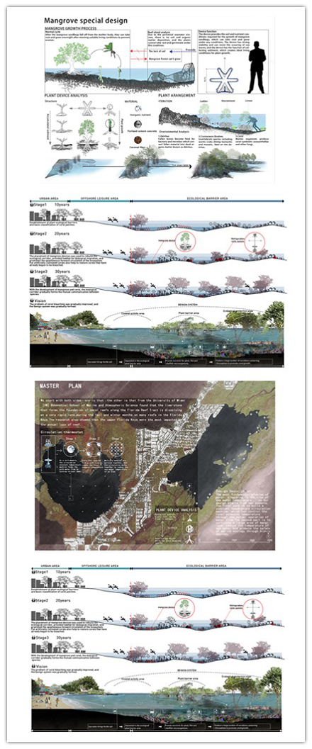 随着气候变化导致海水温度升高,整个生态系统都将崩溃,包括珊瑚礁。这项研究并非旨在解决气候变化问题,而是着重于在地方一级(尤其是在佛罗里达礁岛礁)周围管理变化。自走式循环装置结合了风能,太阳能和潮汐能,可以测量礁石水的温度,并在水变得致命时有效地对其进行制冷。该策略还包括珊瑚水产养殖和海岸线红树林的形成,以减少人类与精致的礁石结构的负面互动的可能性,并通过玻璃走道鼓励人们放手观赏珊瑚。