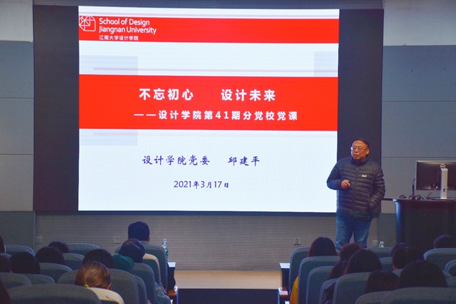 接下来由邱建平讲授党课,主题为“不忘初心,设计未来”。邱建平从“学党史,红船杨帆百年”讲起,说明红船精神是开天辟地,敢为人先的首创精神,是坚定理想,百折不挠的奋斗精神,结合十九大内容以及新冠肺炎疫情国内外各项数据的对比,让大家看到了中国力量,中国精神,中国担当。课程第二方面的内容是“知无锡,家国事天下事”,邱建平绍了无锡的这座城市的历史发展、历史名人,呼吁同学关心国事天下事。最后一部分内容是“设未来,传承青山精神”,通过三个词组展开详细生动地讲述,“我是谁——建设者和接班人”“我骄傲——党员发展对象”“我设计——守初心和使命”,党课层层递进、生动精彩。