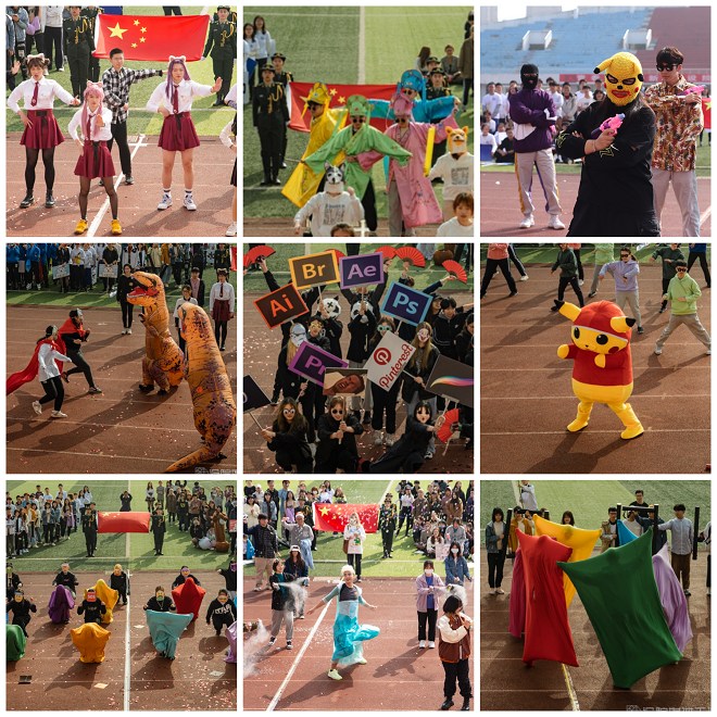 少年可期,风华正茂,国旗班、2020级25个方阵,挥扬着旗帜,昂首阔步先后经过主席台。他们精神抖擞、意气风发,充分展示了学院师生积极进取、勇于争先、昂扬向上的精神状态,赢得了现场师生的阵阵掌声。异彩纷呈的方阵表演令人眼前一亮,设院学子的创新意识和奥运精神在细节处展现的淋漓尽致。表演者动作整齐划一,刚劲有力,一声声响亮的口号喊出了永不言败的决心。各个方阵表演经过精心编排,日夜练习,在开幕式上大放光彩,充分展示了当代设计人的风貌。