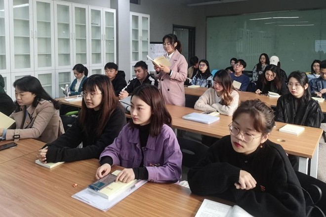 王晖以“共产主义在中国-从五四运动到一大召开”为题为创业党支部和交互党支部全体师生党员讲授党课。她从习近平总书记在纪念五四运动100周年大会上的重要讲话切入,从中国共产党产生的时代背景、中国共产党的诞生早期的艰辛历程、中共一大代表的人生浮沉、对当代学生党员成长的启示四个方面进行讲解,围绕中国共产党成立过程中的关键人物的革命经历为脉络,介绍了中国先进分子从五四运动以全民族的行动激发了追求真理、追求进步的伟大觉醒,到集合在马克思主义旗帜下成立中国共产党的伟大历程。她指出,五四新文化运动是中国人的“伟大觉醒”,中国共产党成立是中国革命新的伟大开端。